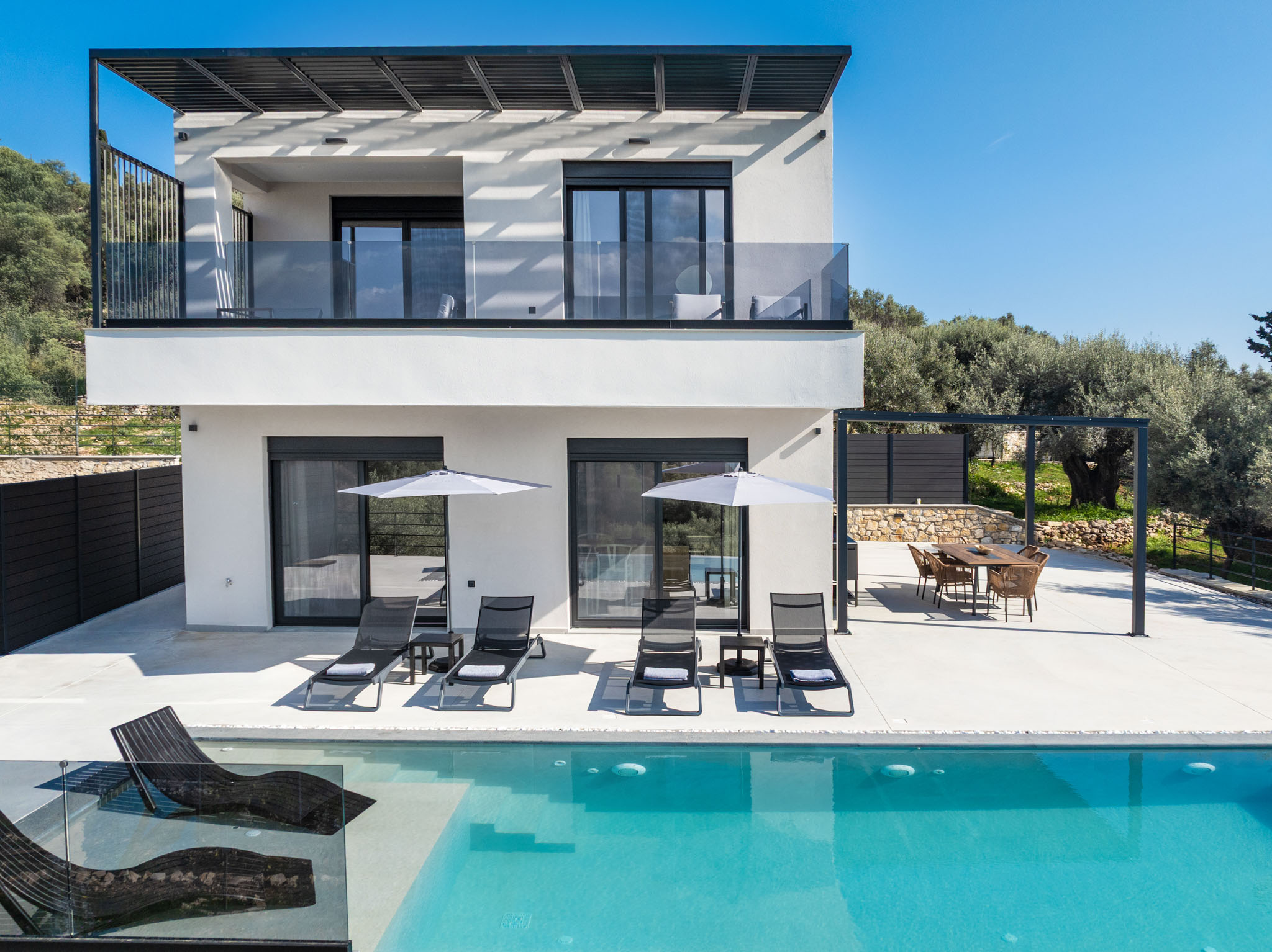 Polyvolos Villas consists of three distinct, newly built villas (2024) with a sleek, minimal design, located on the island of Meganisi, near Lefkada. Each villa offers a private garden, an outdoor pool, and stunning city views. Just 2 km from Spilia Beach, guests can enjoy free WiFi and private on-site parking.